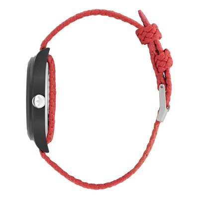 Cette montre Adidas a un boîtier Résine 39 mm en diamètre et est équipée d'un bracelet Textile. Le boîtier contient un mouvement Timex et la montre est dotée d'un cristal Acrylique..
