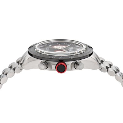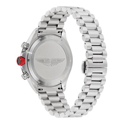 Cette montre Aston Martin a un boîtier Inox 44 mm en diamètre et est équipée d'un bracelet Inox. Le boîtier contient un mouvement Timex et la montre est dotée d'un cristal Minéral..