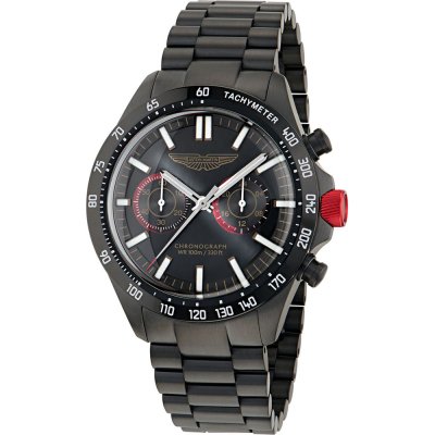 Cette montre Aston Martin a un boîtier Inox 44 mm en diamètre et est équipée d'un bracelet Inox. Le boîtier contient un mouvement Timex et la montre est dotée d'un cristal Minéral..