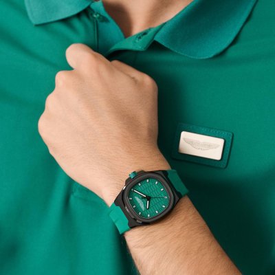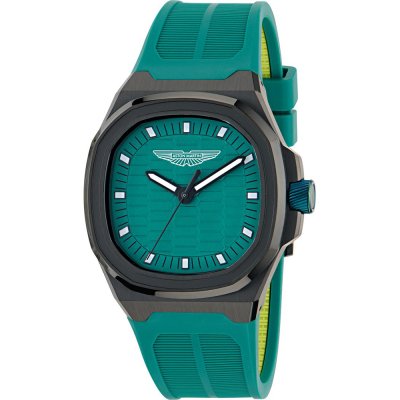 Cette montre Aston Martin a un boîtier Inox 40 mm en diamètre et est équipée d'un bracelet caoutchouc. Le boîtier contient un mouvement Timex et la montre est dotée d'un cristal Minéral..