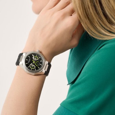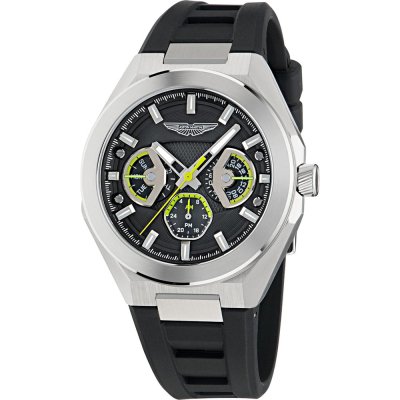 Cette montre Aston Martin a un boîtier Inox 42 mm en diamètre et est équipée d'un bracelet caoutchouc. Le boîtier contient un mouvement Timex et la montre est dotée d'un cristal Minéral..