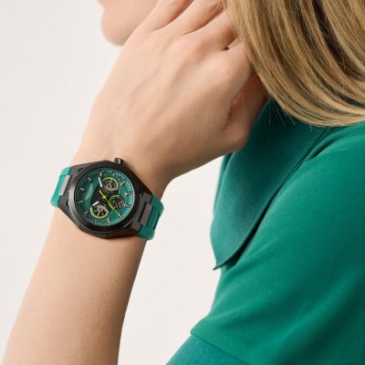 Cette montre Aston Martin a un boîtier Inox 42 mm en diamètre et est équipée d'un bracelet caoutchouc. Le boîtier contient un mouvement Timex et la montre est dotée d'un cristal Minéral..