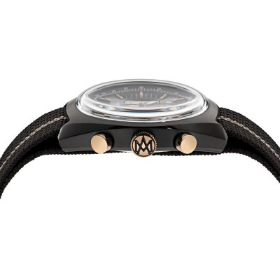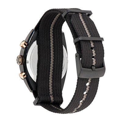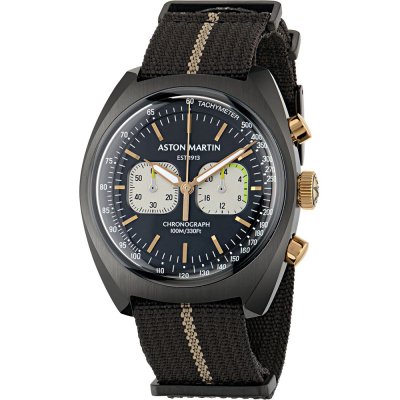 Cette montre Aston Martin a un boîtier Inox 43 mm en diamètre et est équipée d'un bracelet Nylon. Le boîtier contient un mouvement Timex et la montre est dotée d'un cristal Minéral..