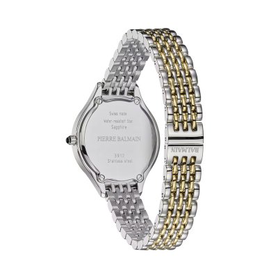 Cette montre Balmain a un boîtier Inox 29 mm en diamètre et est équipée d'un bracelet Inox. Le boîtier contient un mouvement ETA et la montre est dotée d'un cristal Saphire..