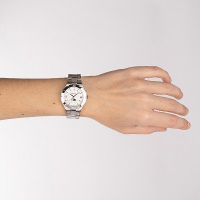 Cette montre Balmain a un boîtier Inox 33 mm en diamètre et est équipée d'un bracelet Inox. Le boîtier contient un mouvement ETA et la montre est dotée d'un cristal Saphire..