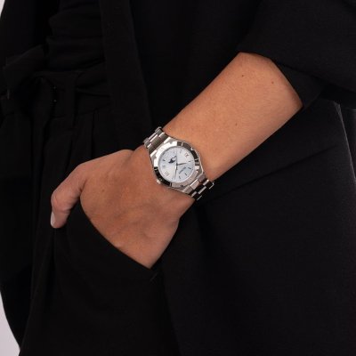 Cette montre Balmain a un boîtier Inox 33 mm en diamètre et est équipée d'un bracelet Inox. Le boîtier contient un mouvement ETA et la montre est dotée d'un cristal Saphire..