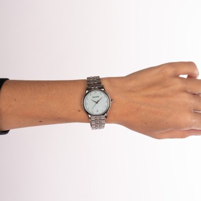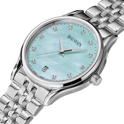 Cette montre Balmain a un boîtier Inox 32 mm en diamètre et est équipée d'un bracelet Inox. Le boîtier contient un mouvement ETA et la montre est dotée d'un cristal Saphire..