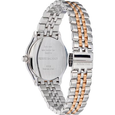 Cette montre Balmain a un boîtier Inox 32 mm en diamètre et est équipée d'un bracelet Inox. Le boîtier contient un mouvement ETA et la montre est dotée d'un cristal Saphire..