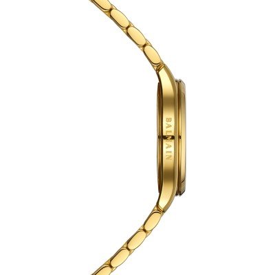 Cette montre Balmain a un boîtier Inox 27.5 mm en diamètre et est équipée d'un bracelet Inox. Le boîtier contient un mouvement ETA et la montre est dotée d'un cristal Saphire..