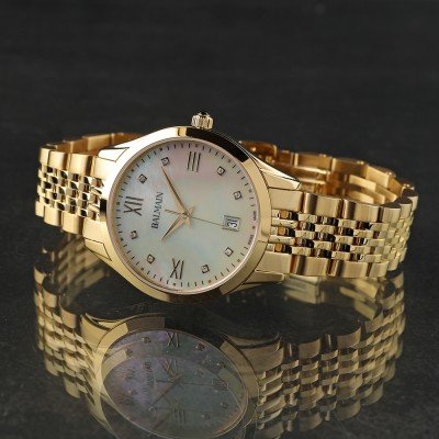 Cette montre Balmain a un boîtier Inox 34 mm en diamètre et est équipée d'un bracelet Inox. Le boîtier contient un mouvement ETA et la montre est dotée d'un cristal Saphire..