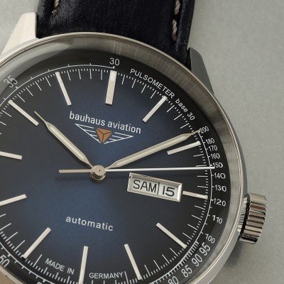 Cette montre Bauhaus a un boîtier Inox 42 mm en diamètre et est équipée d'un bracelet cuir. Le boîtier contient un mouvement Miyota et la montre est dotée d'un cristal K1 Minéral..