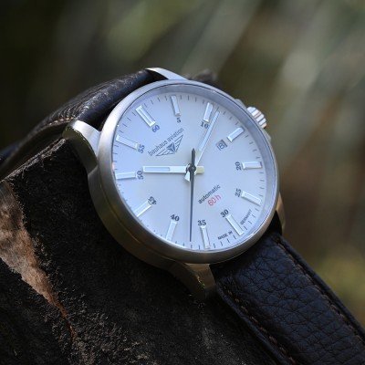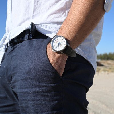 Cette montre Bauhaus a un boîtier Titane 42 mm en diamètre et est équipée d'un bracelet cuir. Le boîtier contient un mouvement Miyota et la montre est dotée d'un cristal Saphire..