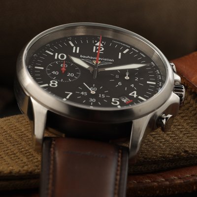 Cette montre Bauhaus a un boîtier Inox 42 mm en diamètre et est équipée d'un bracelet cuir. Le boîtier contient un mouvement Miyota et la montre est dotée d'un cristal K1 Minéral..