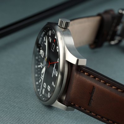 Cette montre Bauhaus a un boîtier Inox 42 mm en diamètre et est équipée d'un bracelet cuir. Le boîtier contient un mouvement Ronda et la montre est dotée d'un cristal K1 Minéral..