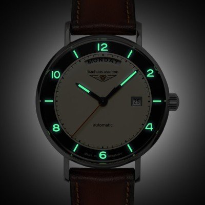 Cette montre Bauhaus a un boîtier Inox 41 mm en diamètre et est équipée d'un bracelet cuir. Le boîtier contient un mouvement Miyota et la montre est dotée d'un cristal K1 Minéral..