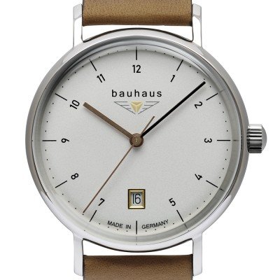 Cette montre Bauhaus a un boîtier Inox 36 mm en diamètre et est équipée d'un bracelet cuir. Le boîtier contient un mouvement Ronda et la montre est dotée d'un cristal K1 Minéral..