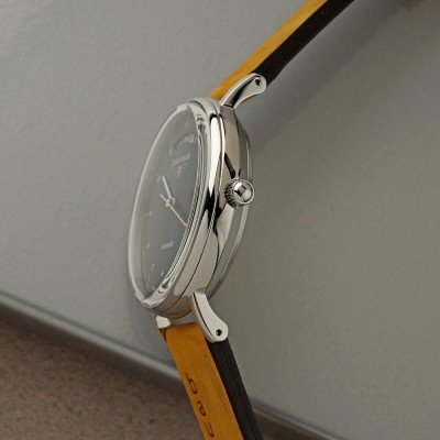 Cette montre Bauhaus a un boîtier Inox 41 mm en diamètre et est équipée d'un bracelet cuir. Le boîtier contient un mouvement Miyota et la montre est dotée d'un cristal K1 Minéral..
