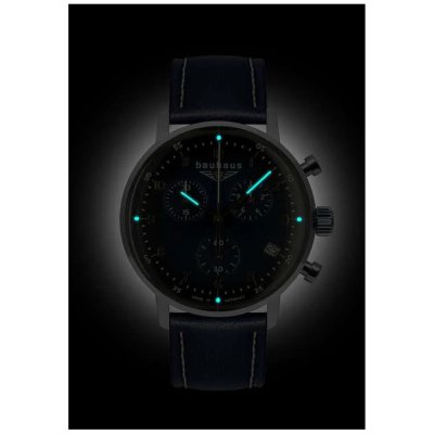 Cette montre Bauhaus a un boîtier Inox 41 mm en diamètre et est équipée d'un bracelet cuir. Le boîtier contient un mouvement ETA et la montre est dotée d'un cristal K1 Minéral..