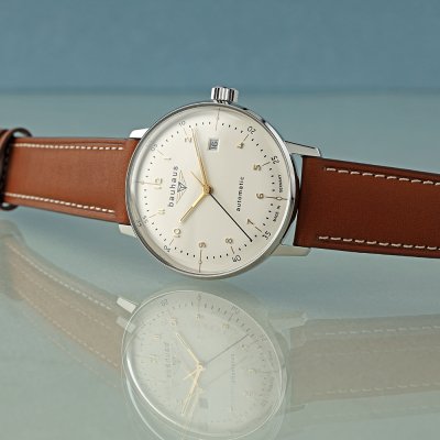 Cette montre Bauhaus a un boîtier Inox 41 mm en diamètre et est équipée d'un bracelet cuir. Le boîtier contient un mouvement Miyota et la montre est dotée d'un cristal K1 Minéral..