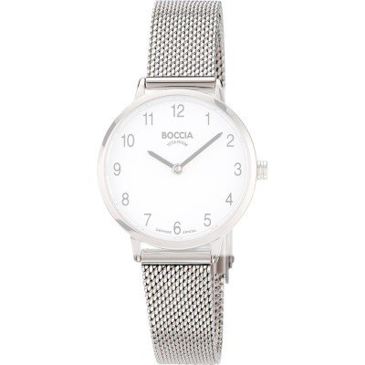 Ce bracelet de montre Bocciaest fait de acier inoxydable et est attaché à la montre au moyen de Épingles à ressort. Le bracelet a une taille de 12 mm et se ferme au moyen d'un fermoir milanais. Le bracelet est doté d'une monture droite, ce qui signifie qu'il convient à toutes les montres de la Boccia dotées d'une monture droite..