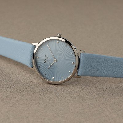 Cette montre Boccia a un boîtier Titane 34 mm en diamètre et est équipée d'un bracelet cuir. Le boîtier contient un mouvement Miyota et la montre est dotée d'un cristal Minéral..