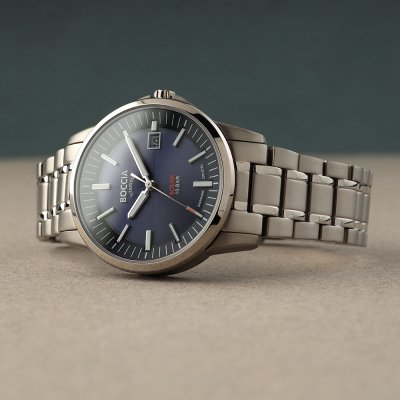 Cette montre Boccia a un boîtier Titane 40 mm en diamètre et est équipée d'un bracelet Titane. Le boîtier contient un mouvement Seiko et la montre est dotée d'un cristal Saphire..