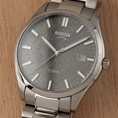 Cette montre Boccia a un boîtier Titane 40 mm en diamètre et est équipée d'un bracelet Titane. Le boîtier contient un mouvement Miyota et la montre est dotée d'un cristal Saphire..