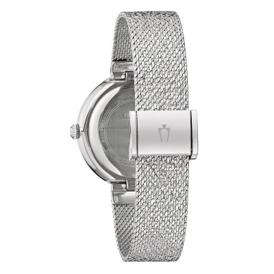 Cette montre Bulova a un boîtier Inox 32 mm en diamètre et est équipée d'un bracelet Inox. Le boîtier contient un mouvement Miyota et la montre est dotée d'un cristal Saphire..