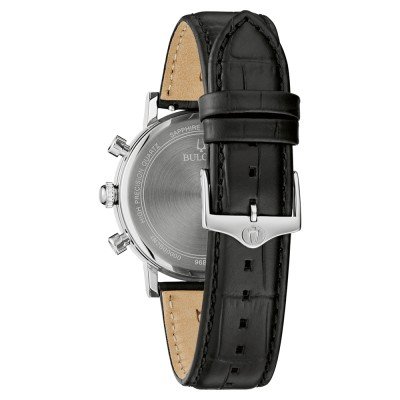 Cette montre Bulova a un boîtier Inox 39 mm en diamètre et est équipée d'un bracelet cuir. Le boîtier contient un mouvement Miyota et la montre est dotée d'un cristal Saphire..