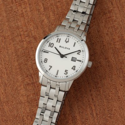 Cette montre Bulova a un boîtier Inox 31 mm en diamètre et est équipée d'un bracelet Inox. Le boîtier contient un mouvement Miyota et la montre est dotée d'un cristal Minéral..