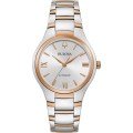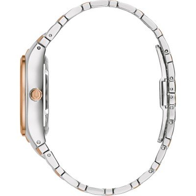 Cette montre Bulova a un boîtier Inox 34 mm en diamètre et est équipée d'un bracelet Inox. Le boîtier contient un mouvement Miyota et la montre est dotée d'un cristal Minéral..