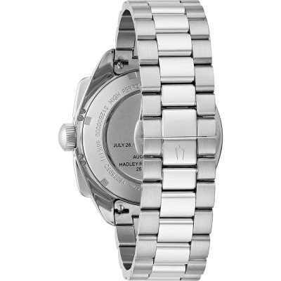 Cette montre Bulova a un boîtier Inox 43.5 mm en diamètre et est équipée d'un bracelet Inox. Le boîtier contient un mouvement Miyota et la montre est dotée d'un cristal Saphire..