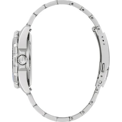 Cette montre Bulova a un boîtier Inox 41 mm en diamètre et est équipée d'un bracelet Inox. Le boîtier contient un mouvement Miyota et la montre est dotée d'un cristal Saphire..