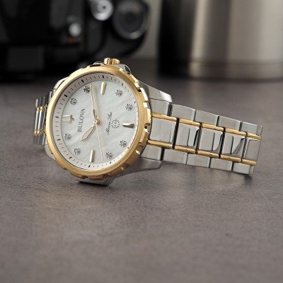 Cette montre Bulova a un boîtier Inox 36 mm en diamètre et est équipée d'un bracelet Inox. Le boîtier contient un mouvement Miyota et la montre est dotée d'un cristal Saphire..