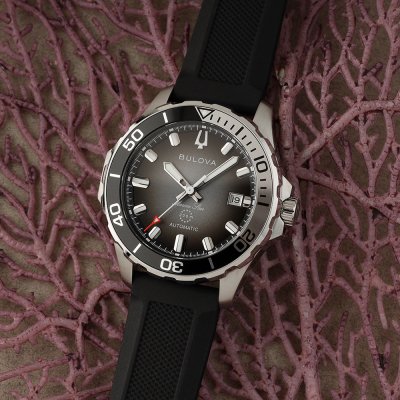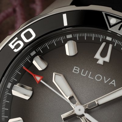 Cette montre Bulova a un boîtier Inox 41 mm en diamètre et est équipée d'un bracelet caoutchouc. Le boîtier contient un mouvement Miyota et la montre est dotée d'un cristal Saphire..