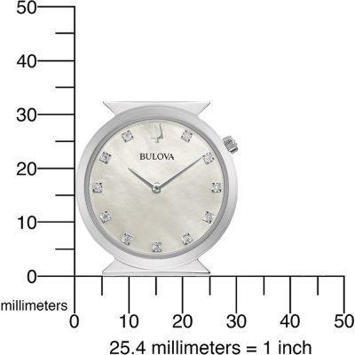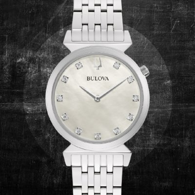 Cette montre Bulova a un boîtier Inox 30 mm en diamètre et est équipée d'un bracelet Inox. Le boîtier contient un mouvement Miyota et la montre est dotée d'un cristal Saphire..