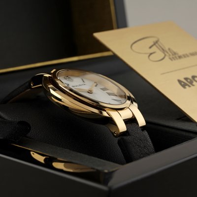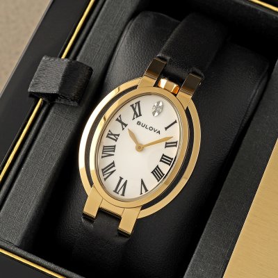 Cette montre Bulova a un boîtier Inox 28 mm en diamètre et est équipée d'un bracelet cuir. Le boîtier contient un mouvement Miyota et la montre est dotée d'un cristal Saphire..