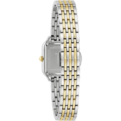 Cette montre Bulova a un boîtier Inox 23 mm en diamètre et est équipée d'un bracelet Inox. Le boîtier contient un mouvement Miyota et la montre est dotée d'un cristal Saphire..
