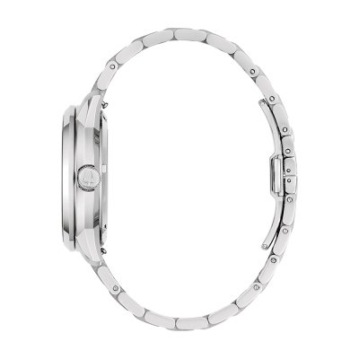 Cette montre Bulova a un boîtier Inox 40 mm en diamètre et est équipée d'un bracelet Inox. Le boîtier contient un mouvement Miyota et la montre est dotée d'un cristal Saphir antireflet unique..