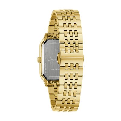 Cette montre Bulova a un boîtier Inox 32 mm en diamètre et est équipée d'un bracelet Inox. Le boîtier contient un mouvement Miyota et la montre est dotée d'un cristal Saphire..