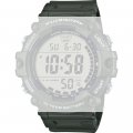 Ce bracelet de montre Casioest fait de résine et est attaché à la montre au moyen de Épingles à ressort. Le bracelet a une taille de 27 mm et se ferme au moyen d'un boucle. Le bracelet n'a pas de support droit, ce qui signifie que ce bracelet convient uniquement aux montres énumérées ci-dessous.