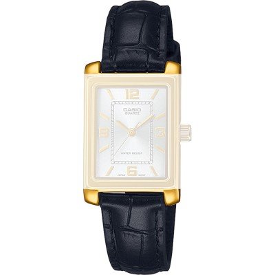 Ce bracelet de montre Casioest fait de cuir et est attaché à la montre au moyen de Épingles à ressort. Le bracelet a une taille de 14 mm et se ferme au moyen d'un boucle. Le bracelet est doté d'une monture droite, ce qui signifie qu'il convient à toutes les montres de la Casio dotées d'une monture droite..