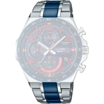 Ce bracelet de montre Casio Edificeest fait de acier inoxydable et est attaché à la montre au moyen de goupilles en acier. Le bracelet a une taille de 26 mm et se ferme au moyen d'un boucle déployante avec boutons poussoirs. Le bracelet n'a pas de support droit, ce qui signifie que ce bracelet convient uniquement aux montres énumérées ci-dessous.