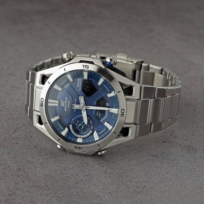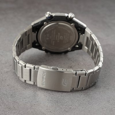 Cette montre Casio Edifice a un boîtier Acier inoxydable et carbone 45.8 mm en diamètre et est équipée d'un bracelet Inox.