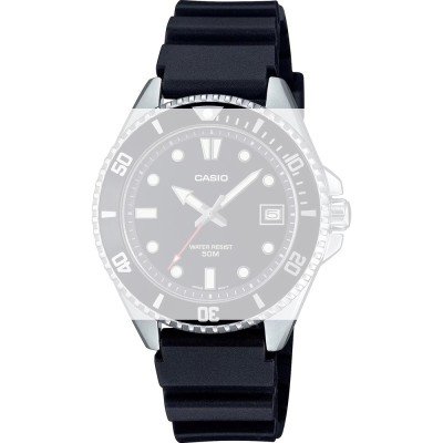 Ce bracelet de montre Casioest fait de résine et est attaché à la montre au moyen de Épingles à ressort. Le bracelet a une taille de 16 mm et se ferme au moyen d'un boucle. Le bracelet n'a pas de support droit, ce qui signifie que ce bracelet convient uniquement aux montres énumérées ci-dessous.