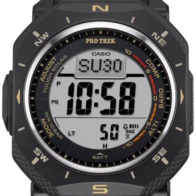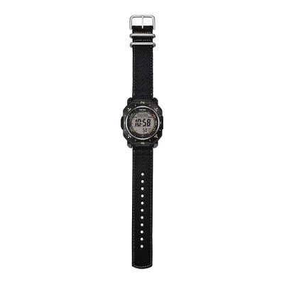 Cette montre Casio a un boîtier Acier inoxydable et résine biosourcée 46 mm en diamètre et est équipée d'un bracelet Textile. Le boîtier contient un mouvement Casio et la montre est dotée d'un cristal Minéral..