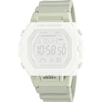Ce bracelet de montre Casioest fait de résine et est attaché à la montre au moyen de Épingles à ressort. Le bracelet a une taille de 20 mm et se ferme au moyen d'un boucle. Le bracelet n'a pas de support droit, ce qui signifie que ce bracelet convient uniquement aux montres énumérées ci-dessous.