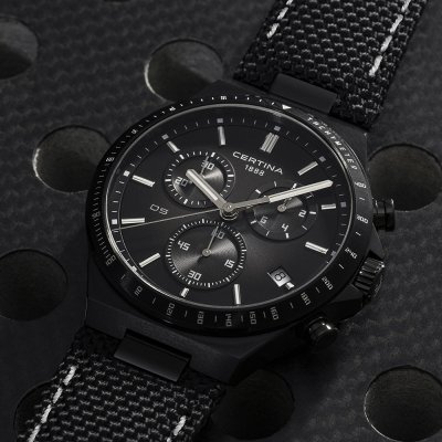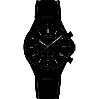 Cette montre Certina a un boîtier Inox 41 mm en diamètre et est équipée d'un bracelet Textile. Le boîtier contient un mouvement ETA et la montre est dotée d'un cristal Saphir antireflet unique..
