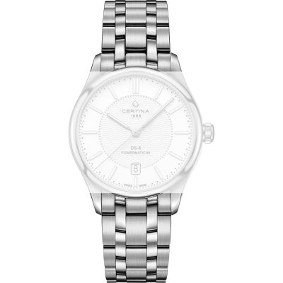 Ce bracelet de montre Certinaest fait de acier inoxydable et est attaché à la montre au moyen de Épingles à ressort. Le bracelet a une taille de 20 mm et se ferme au moyen d'un boucle papillon avec boutons poussoirs. Le bracelet n'a pas de support droit, ce qui signifie que ce bracelet convient uniquement aux montres énumérées ci-dessous.