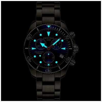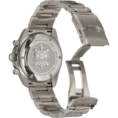 Cette montre Certina a un boîtier Titane 42 mm en diamètre et est équipée d'un bracelet Titane. Le boîtier contient un mouvement ETA et la montre est dotée d'un cristal Saphir antireflet unique..